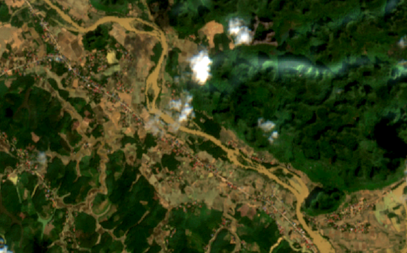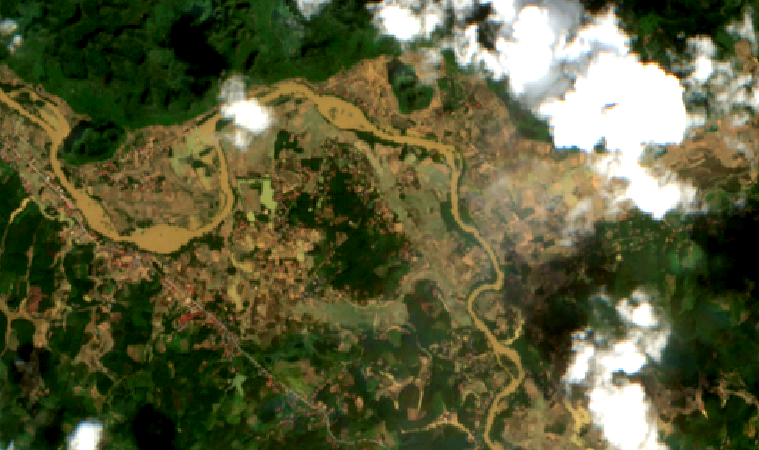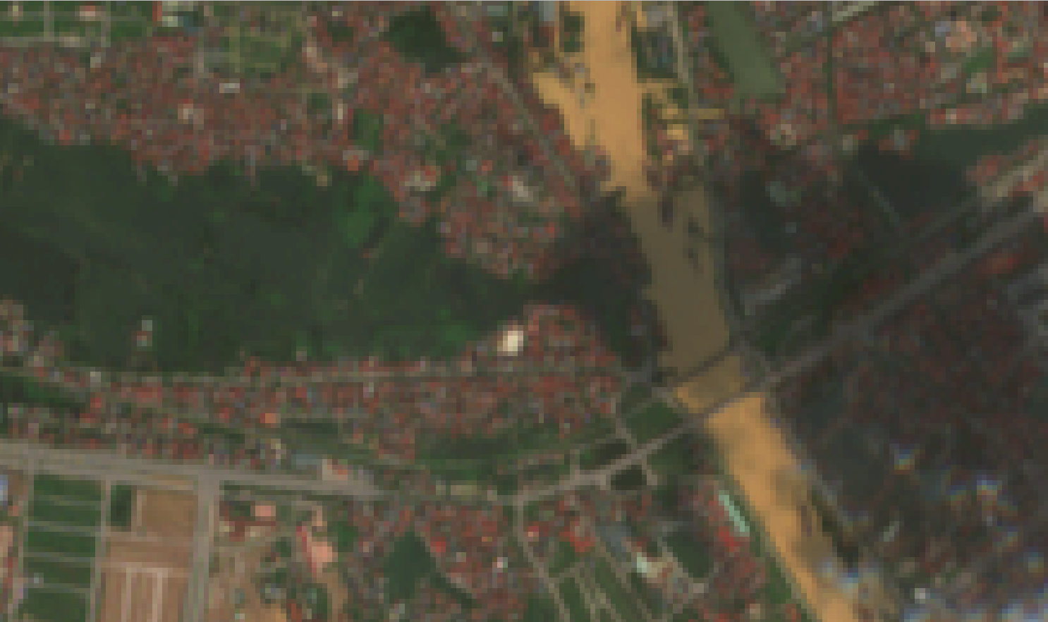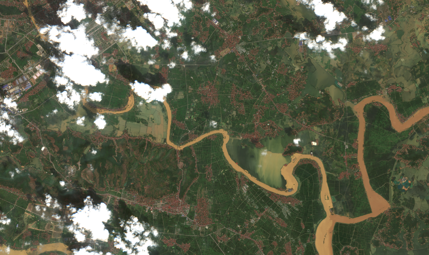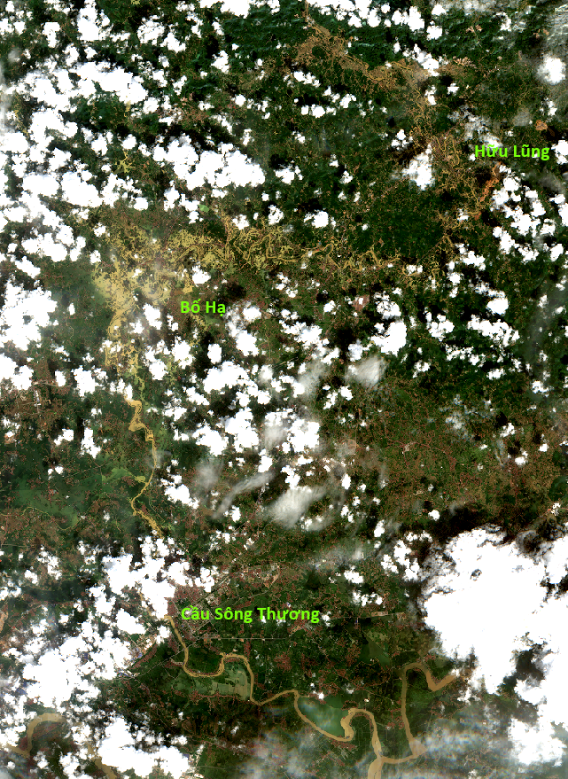 Ảnh Sentinel-2 chụp khu vực lưu vực sông Thương cho thấy, tới sáng ngày 11/10/2025, tình trạng ngập ở Lạng Sơn đã được cải thiện đáng kể, một số khu vực phía bắc đã gần như hết ngập. Xuôi dòng về phía Bắc Ninh, tình trạng ngập đã có giảm so với sáng ngày 9/10/2025, song vẫn còn một số làng ven sông bị cô lập. Phía hạ lưu, dòng chảy đã giảm tốc tộ, không phát sinh thêm vùng ngập mới. Đặc biệt, cầu đường sắt Sông Thương đã được an toàn. Với vùng phủ trùm rộng, dữ liệu viễn thám cung cấp thông tin hữu ích cho giám sát diễn biến ngập lụt cũng như giám sát thiên tai khác.